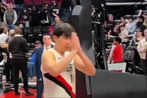 賽后,開(kāi)拓者主場(chǎng)球迷們呼喊楊瀚森的名字予以支持,楊瀚森雙手合十表示感謝。
