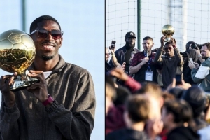 法國(guó)足協(xié)曬照,登貝萊回到成長(zhǎng)之地埃夫勒,向家鄉(xiāng)人民展示了他的金球獎(jiǎng)。