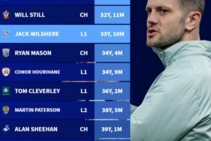體育資訊10月14日訊 德國轉(zhuǎn)會市場盤點了英國前四級別聯(lián)賽球隊主教練年齡情況,盧頓新帥威爾希爾以33歲10個月成第三年輕主教練。