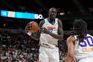 本場(chǎng)比賽,太陽(yáng)的10號(hào)秀馬盧阿奇投籃10中8,三分球1中1,高效拿下17分8籃板2助攻3搶斷2蓋帽的全面數(shù)據(jù)。