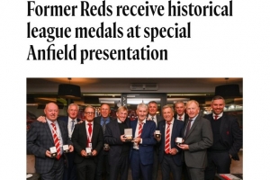 體育資訊10月16日訊 利物浦俱樂(lè)部近日在安菲爾德舉行了一場(chǎng)特別的頒獎(jiǎng)儀式,向14名前球員頒發(fā)了聯(lián)賽冠軍獎(jiǎng)牌,以表彰他們?yōu)榍蜿?duì)歷史上的20座頂級(jí)聯(lián)賽冠軍所做出的貢獻(xiàn)。由于當(dāng)時(shí)出場(chǎng)次數(shù)資格限制,這些球員在當(dāng)年遺憾地錯(cuò)過(guò)了獲得獎(jiǎng)牌的機(jī)會(huì)。