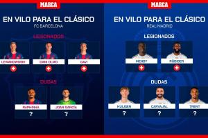 體育資訊10月17日訊 國際比賽日結(jié)束,聯(lián)賽回歸。本月月底西班牙國家德比便將打響,今日馬卡盤點(diǎn)了國家德比可能傷缺的人員。