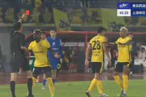被主裁出示黃牌后仍不依不饒,最后被直接紅牌罰下,西海岸剩9人!