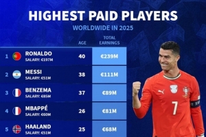 體育資訊10月18日訊 德國轉(zhuǎn)會(huì)市場統(tǒng)計(jì)了球員2025年的收入,并列出榜單,C羅2.39億歐居首,梅西1.11億歐次席。