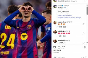 本場(chǎng)比賽佩德里打進(jìn)精彩進(jìn)球,賽后他也在社媒曬出慶祝進(jìn)球照片,配文寫道:“直到最后,加油巴薩!”
