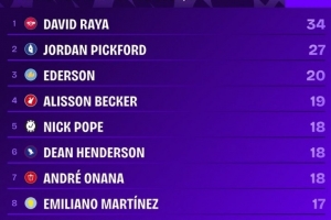 體育資訊10月19日訊 據(jù)統(tǒng)計(jì),阿森納門(mén)將拉亞自2023/24賽季加盟球隊(duì)以來(lái),在英超聯(lián)賽中的表現(xiàn)極具統(tǒng)治力。