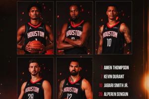 體育資訊10月21日訊 火箭主教練烏度卡透露球隊新賽季揭幕戰(zhàn)對陣雷霆的首發(fā),分別為阿門-湯普森、杜蘭特、小賈巴里-史密斯、申京和史蒂文-亞當(dāng)斯。