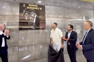 體育資訊10月21日訊 比利亞雷亞爾俱樂部在主場(chǎng)外的“金色大道”為青訓(xùn)出身的球員、2024年金球獎(jiǎng)得主羅德里舉行了畫像揭幕儀式,以此向這位成長(zhǎng)于俱樂部并在世界足壇取得非凡成就的中場(chǎng)巨星致敬。