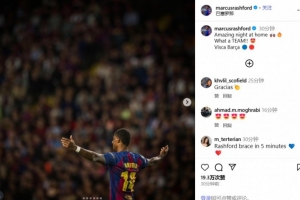 在社交媒體上,拉什福德慶祝了本場比賽的勝利,他寫道:精彩的主場之夜,多么棒的一支球隊!加油巴薩!