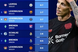 體育資訊10月22日訊 在本輪歐冠,勒沃庫森2-7慘敗給巴黎。德轉(zhuǎn)也盤點(diǎn)了德甲球隊在歐冠歷史最大比分失利榜單,具體如下: