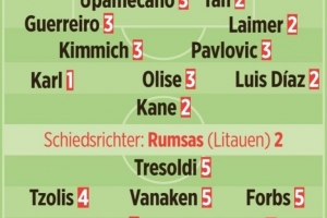 卡爾1分、基米希3分、奧利塞3分、帕夫洛維奇3分、迪亞斯2分