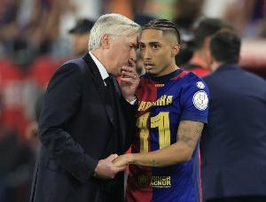 體育資訊10月24日訊 據(jù)西媒《阿斯報》最新消息,孔德預計能夠參加國家德比,而拉菲尼亞已經(jīng)確定缺席這場比賽。
