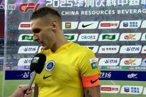 體育資訊10月24日訊 今晚中超聯(lián)賽第28輪,深圳新鵬城2-1戰(zhàn)勝武漢三鎮(zhèn)。賽后深圳新鵬城后衛(wèi)杜加利奇在場(chǎng)邊接受了采訪。
