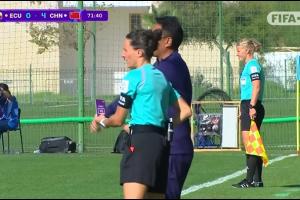 體育資訊10月24日訊 U17女子世界杯小組賽C組,厄瓜多爾女足U17vs中國女足U17。比賽第73分鐘,中國隊(duì)教練組申請VAR挑戰(zhàn),認(rèn)為對手禁區(qū)內(nèi)手球。裁判觀看回放后判認(rèn)定不是點(diǎn)球。