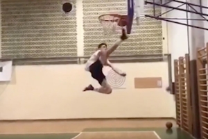 舍什科說:“是的,那確實(shí)是我。挺搞笑的,因?yàn)楫?dāng)時(shí)球卡在籃框,我也不知道為什么就想用腳去把它夠下來。這可不是每個(gè)人都能做到的。”