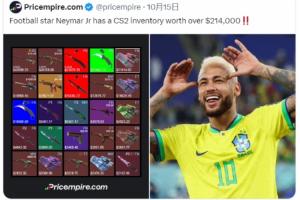 體育資訊10月25日訊 日前Valve公司(V社)開發(fā)的游戲《反恐精英2》(CS2)迎來一項重大更新,直接導(dǎo)致游戲內(nèi)飾品市場價格崩盤,巴西球星內(nèi)馬爾也深受其害。