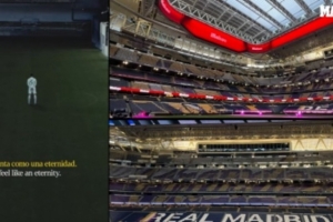 這則宣傳片拍攝于伯納烏球場可伸縮草坪的空間,一線隊球員貝林厄姆、迪亞斯、阿諾德和馬斯坦托諾出鏡,穿梭于充滿未來感和金屬質(zhì)感的黑暗場景中,象征著俱樂部神話起源于此,歷史在此搏動。視頻旁白采用了“神秘而雄心勃勃”的語言,如“偉大要求一切。它從不隱藏。它每天早晨都會奮起”,并結(jié)合新伯納烏可伸縮頂棚的畫面,配以“像太陽一樣不知疲倦”的臺詞。