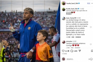 亞馬爾賽前曾公開發(fā)表嘲諷皇馬的言論,但他未能幫助巴薩在國家德比中取勝,亞馬爾的父親穆尼爾社媒連續(xù)發(fā)文安慰兒子:“拉明,孩子你要相信——上帝自有其美意?!?/p>