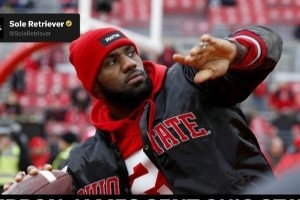 體育資訊10月27日訊 球鞋媒體Soleretriever報(bào)道,詹姆斯和Nike為家鄉(xiāng)俄亥俄州立大學(xué)橄欖球隊(duì)制作了橄欖球版本的特殊鞋款。