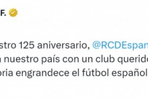 體育資訊10月28日訊 今天是西班牙人俱樂部成立125周年紀(jì)念日,皇馬官方社媒發(fā)文祝賀。