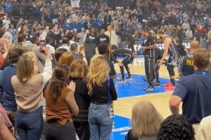 賽前球員入場(chǎng)環(huán)節(jié),當(dāng)威少被介紹時(shí),全場(chǎng)爆發(fā)了歡呼聲和掌聲,許多球迷為曾經(jīng)的俄城之子起立叫好。