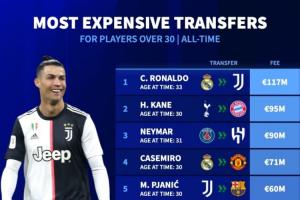 30歲以上球員轉(zhuǎn)會費(fèi)榜: