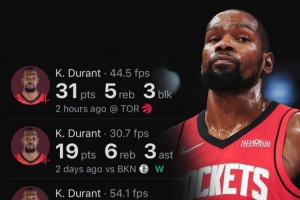 據(jù)統(tǒng)計(jì),杜蘭特火箭生涯4場比賽得分破百,隊(duì)史第二快,僅次于哈登(3場)。