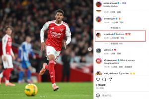 【小拉什福德】薩利巴在阿森納17歲小將安努斯慶祝勝利的帖子下評論:“拉什福德????”