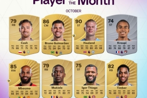 英超10月最佳8人候選名單:哈蘭德、姆伯莫領(lǐng)銜,廷伯在列