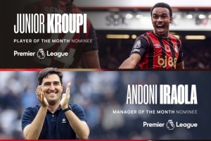 英超官方公布了10月份最佳教練、最佳球員、最佳進球的候選名單,伯恩茅斯三個獎項全部入圍。