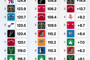 Offensive Rating(進攻效率):指的是球隊每100個回合能得到的平均得分。數值越高,說明球隊進攻端越強。
