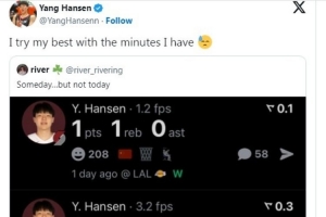 某網(wǎng)友在社媒發(fā)文表示賽季至今的5場比賽小楊得分依次是2分、2分、2分、1分、2分,并配文寫道:“我知道他會打出來,但不是現(xiàn)在!”。假冒楊瀚森賬號則在社媒上回復(fù)道:“我會在能獲得的時間里用盡全力?!边@一回復(fù)被“Sporting News”的編輯誤以為是楊瀚森本尊于是他們撰寫了新聞并發(fā)出(如下所示)。