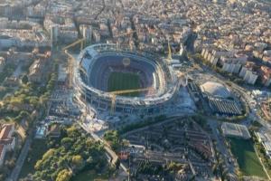 第三層看臺屬于諾坎普球場的第二期工程,應(yīng)于下賽季初完工,但也可能推遲數(shù)月,以便在2027年夏季安裝頂棚。當?shù)谌龑涌磁_完全竣工時,體育場的容量將達到105000名觀眾。