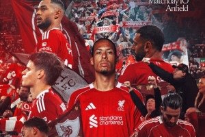 利物浦官方社媒發(fā)布了此役的海報,范戴克、埃基蒂克、薩拉赫、索博斯洛伊、加克波、凱爾凱茲出鏡。