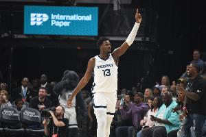 灰熊內(nèi)線賈倫-杰克遜上半場在進攻端打得還算不錯,不過被對手重點防守的他也沒有太多機會。