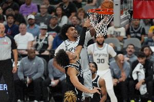 馬刺榜眼秀哈珀因左小腿受傷,在第二節(jié)時(shí)傷退。