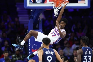 上賽季每個(gè)人都受了傷,首先是恩比德,他因?yàn)榉磸?fù)的膝傷缺席了最后兩個(gè)月,并在四月份接受了關(guān)節(jié)鏡手術(shù),整個(gè)賽季只打了19場比賽。整個(gè)賽季,傷病潮也席卷了保羅-喬治、泰瑞斯-馬克西和賈里德-麥凱恩。球隊(duì)總裁在上賽季的收官戰(zhàn)——那是第58場失利——之后表示,他和球隊(duì)辜負(fù)了費(fèi)城的球迷。