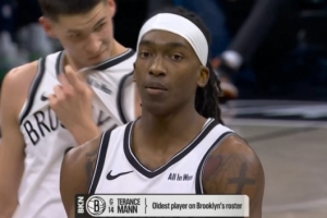 轉播方給出數(shù)據(jù),29歲17天的曼恩已經是籃網陣中最老球員。