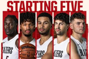 賽前開(kāi)拓者出具本場(chǎng)比賽首發(fā):霍勒迪+夏普+卡馬拉+阿夫迪亞+克林根。