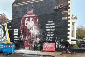 【相關(guān)新聞】阿諾德利物浦壁畫今晨慘遭污損,被涂鴉大字:“老鼠、再見吧”