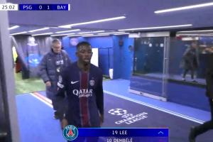 體育資訊11月05日訊 歐冠聯(lián)賽階段第4輪,巴黎對陣拜仁。25分鐘,登貝萊傷退,李剛?cè)侍嫜a出場。
