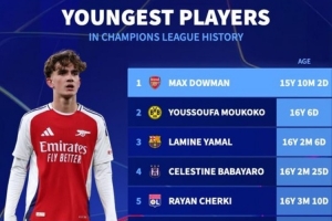 體育資訊11月5日訊 歐冠聯(lián)賽階段第4輪比賽,阿森納在客場以3-0的比分完勝布拉格斯拉維亞。本場比賽,阿森納15歲小將道曼替補(bǔ)登場成歐冠歷史出場最年輕球員。