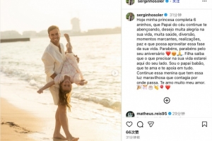 塞爾吉尼奧寫道:“今天我的小公主滿6歲了,愿在天堂的家人們繼續(xù)保佑你,愿你平安喜樂,健康成長,生活五彩斑斕,享受生活帶來的樂趣。爸爸會一直陪在你身邊,永遠愛你,支持你做想做的事情。我愛你,親愛的?!?/p>