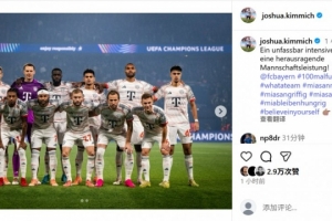 本場比賽也是基米希生涯第100次在歐冠出場,他在個人社媒曬出全隊(duì)合照,配文寫道:“在這一場緊張激烈的比賽中,球隊(duì)表現(xiàn)完美,達(dá)成歐冠百場里程碑!”