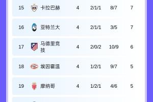 體育資訊11月6日訊 歐冠第4輪全部比賽結(jié)束,最新積分榜情況出爐。目前積分榜上,拜仁槍手國米全勝領(lǐng)跑!本菲卡阿賈克斯全敗墊底。