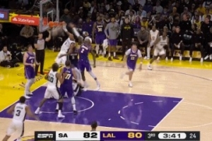 GIF-文班亞馬補(bǔ)扣沒(méi)算,吹了艾頓提前犯規(guī)