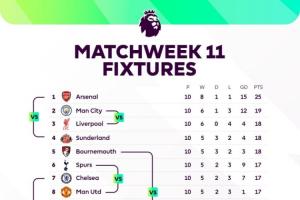 體育資訊11月07日訊 本周末將迎來(lái)英超第11輪的較量,賽前英超官方用一張圖表清晰展示了本輪交手各隊(duì)的名次對(duì)比。