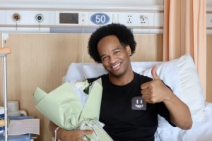 一線隊領(lǐng)隊樊雪峰、體能教練李翔健、隊醫(yī)于曉飛在出發(fā)深圳客場前前往醫(yī)院看望馬格諾,球隊也在今天比賽前手舉馬格諾球衣,祝福他早日康復(fù),早日回歸賽場!
