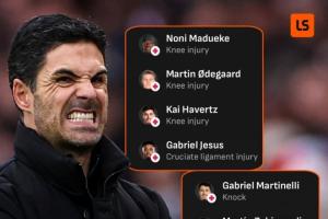 目前,哈弗茨、馬杜埃凱、馬丁內(nèi)利、約克雷斯仍處于傷病未愈的狀態(tài),熱蘇斯剛剛回歸訓(xùn)練,槍手一線隊前鋒僅特羅薩德和薩卡兩人健康能夠上場,中場梅里諾還客串出任首發(fā)中鋒。
