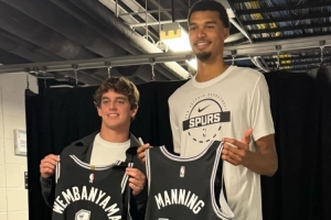 本場(chǎng)比賽,德克薩斯大學(xué)橄欖球隊(duì)球員阿奇·曼寧等人現(xiàn)場(chǎng)觀看了本場(chǎng)比賽,并受到了文班亞馬及??怂沟慕哟?。星三代阿奇·曼寧還和文班互換了球衣。